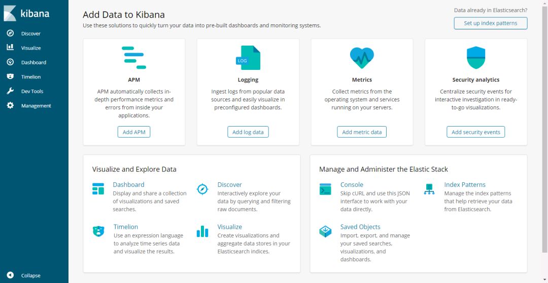 从输出的信息可以知道,kibana对外暴露的端口为30471,因此在Kubernetes集群外可以通过:http://{NodeIP}:30471 访问kibana。