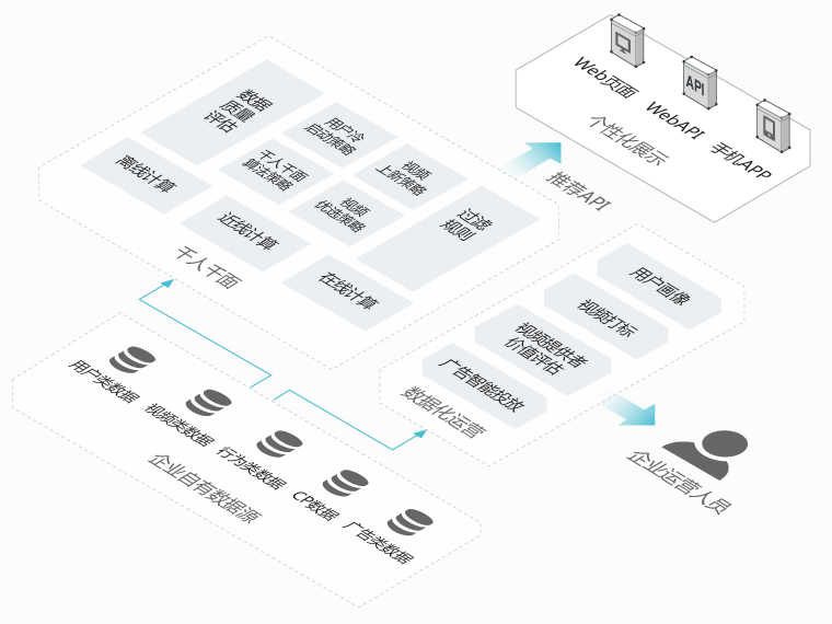 数加推荐引擎全力支持新闻资讯、短视频、直播、电商、社交、音乐、在线教育等众多推荐业务,为各类APP、网站以及其他业务提供高质量的个性化推荐服务。