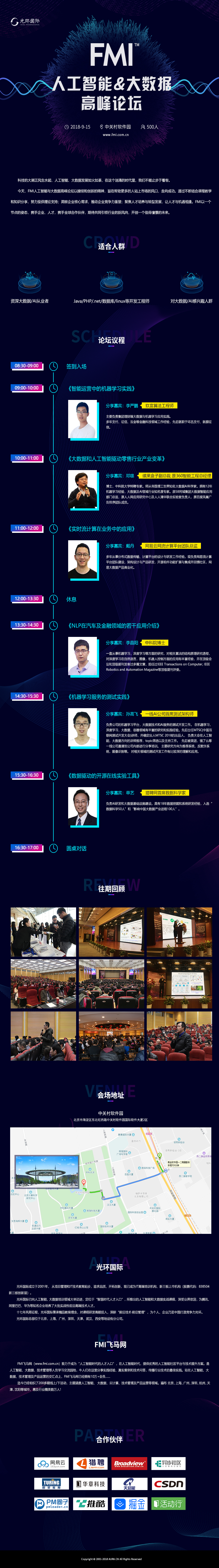 今天,FMI人工智能与大数据高峰论坛以接续和创新的精神,旨在帮助更多的人站上市场的风口,走向成功。通过不断结合课程教学和知识分享,努力提供理论支持;洞察企业核心需求,推动企业竞争力重塑;聚焦人才培养与转型发展,让人才与机遇相逢。FMI以一个节点的姿态,携手企业、人才,携手全球合作伙伴,期待共同引领行业的新风向,开创一个值得憧憬的未来。