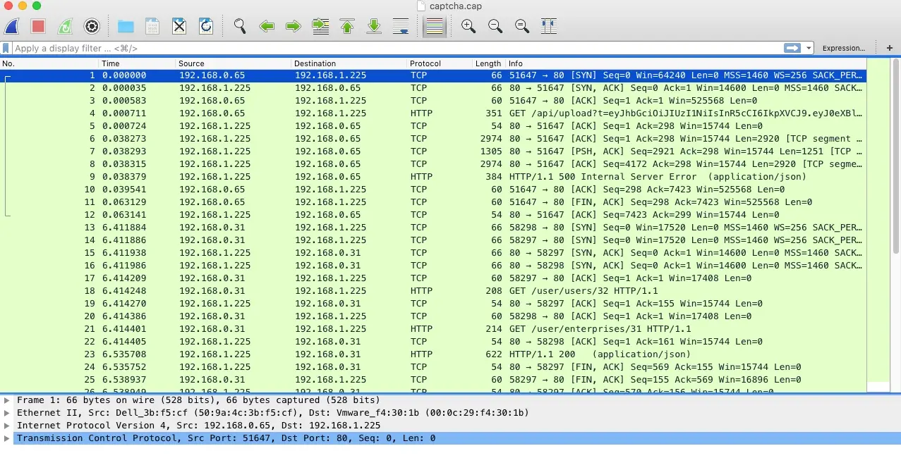 接下来我们从服务器上下载这个captcha.cap文件到自己电脑上,使用 Wireshark 打开