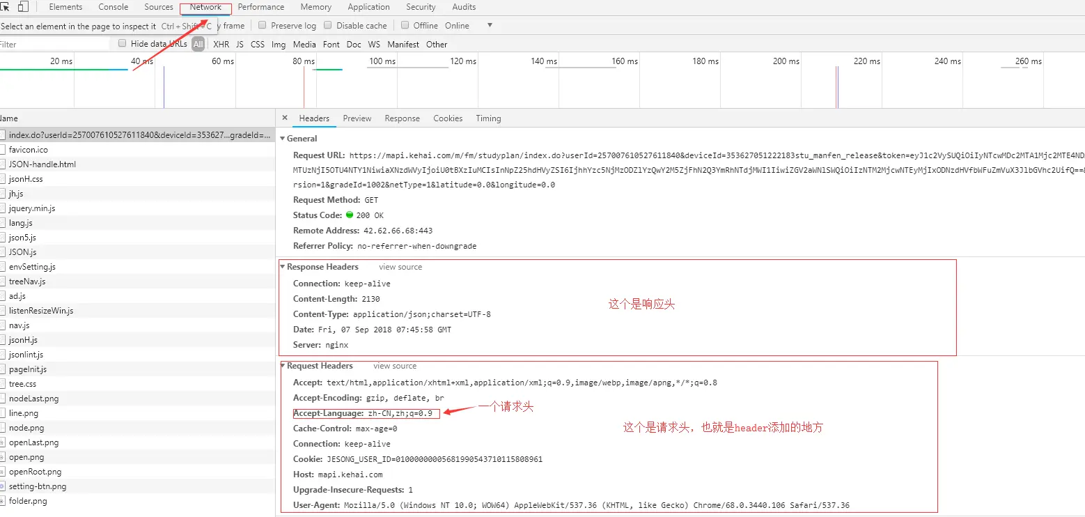 如果你问我请求头是什么的话,你可以在Google浏览器中按F12然后给你一张图!