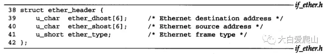 38~42 以太网CRC并不总是正确的。它由接口硬件来计算与检验,接口硬件丢弃到达的CRC差错帧。以太网设备驱动程序负责ether_type的网络和主机字节序列的转换。