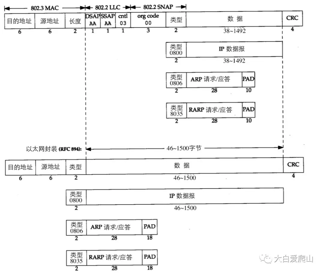 以太网和802.3标准的帧格式如9所示。 图9 以太网和802.3标准帧格式
