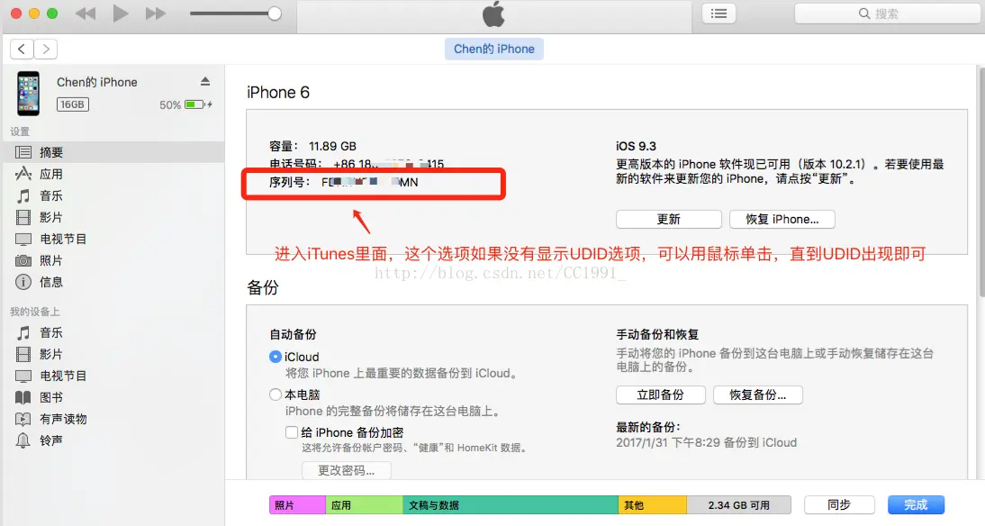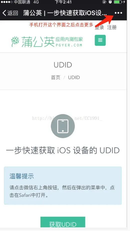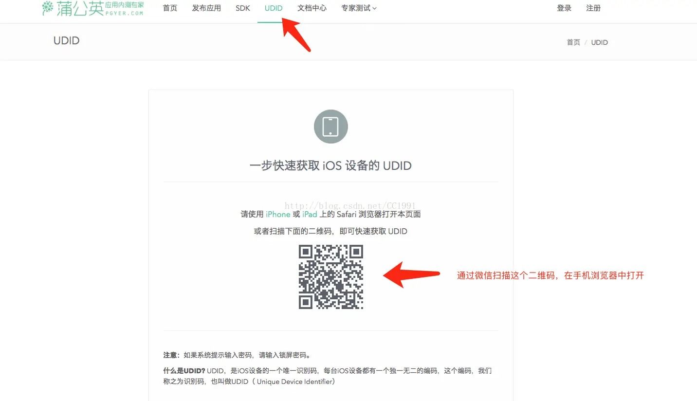 苹果手机获取UDID by0856 2018-09-07 955 阅读1分钟 下面介绍一下怎么获取UDID的方法,有三种方法。 方法一:在苹果电脑上面获取UDID的方法步骤 方法二:在微信上通过扫描获取 方法三:在Windows系统的电脑上面获取iPhone手机UDID,首先要在电脑上面下载一个iTunes,然后连接手机,点击更多详情,下面的设备标识即为UDID。