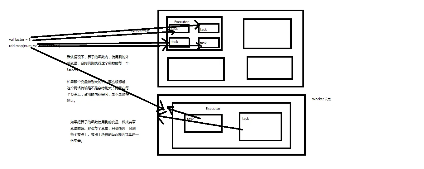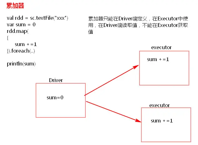 共享变量、广播变量,累计器的工作原理图。
