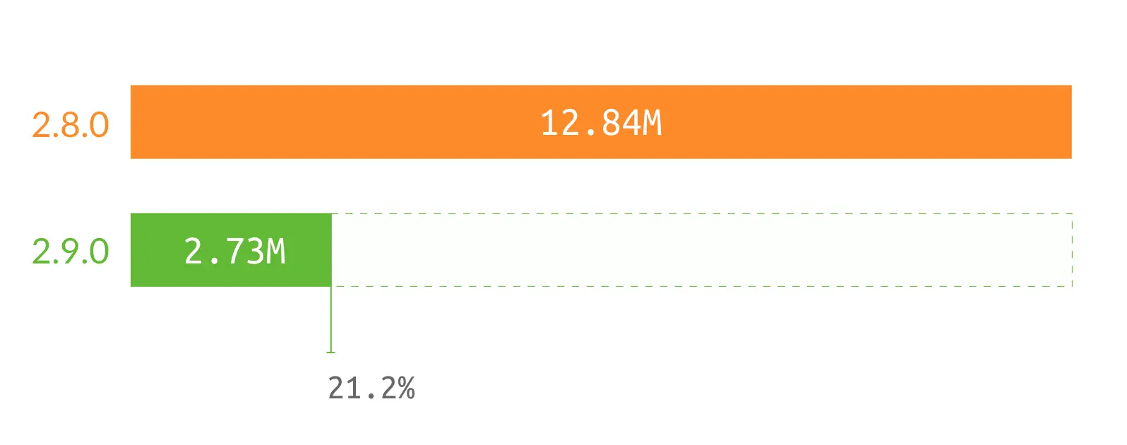 我们针对之前版本臃肿的体积进行了极致优化,在所有功能保持不变的前提下,新版本的包体积从原来的 12.84M 断崖式优化至 2.73M(压缩包为 781K),只有前一个版本的 21%。极致轻量的同时,我们也显著优化了插件使用时的内存占用,体积更小,性能更好。