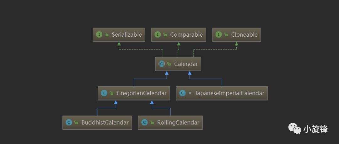 Calendar 抽象类,该类的子类有 BuddhistCalendar、 JapaneseImperialCalendar、GregorianCalendar、 RollingCalendar等