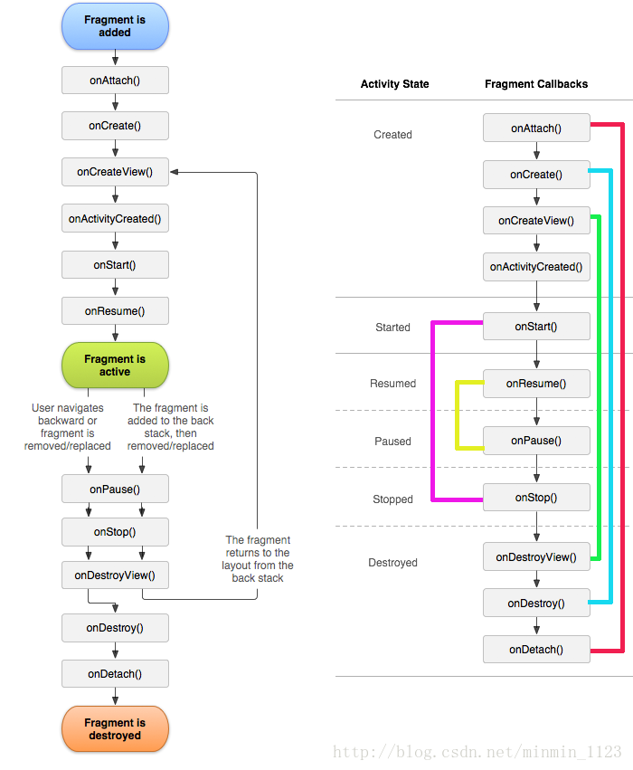 先来看官方文档提供的有关Fragment生命周期的图片。