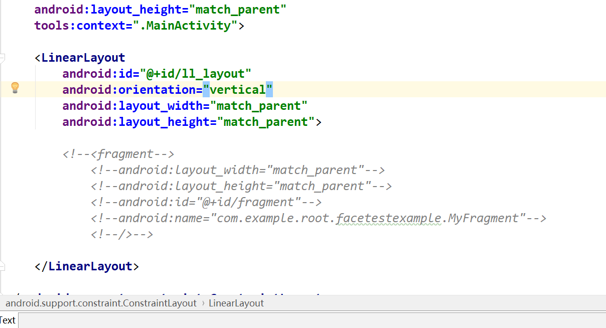 (1)静态加载:在托管 Activity 的 layout 文件中声明 Fragment