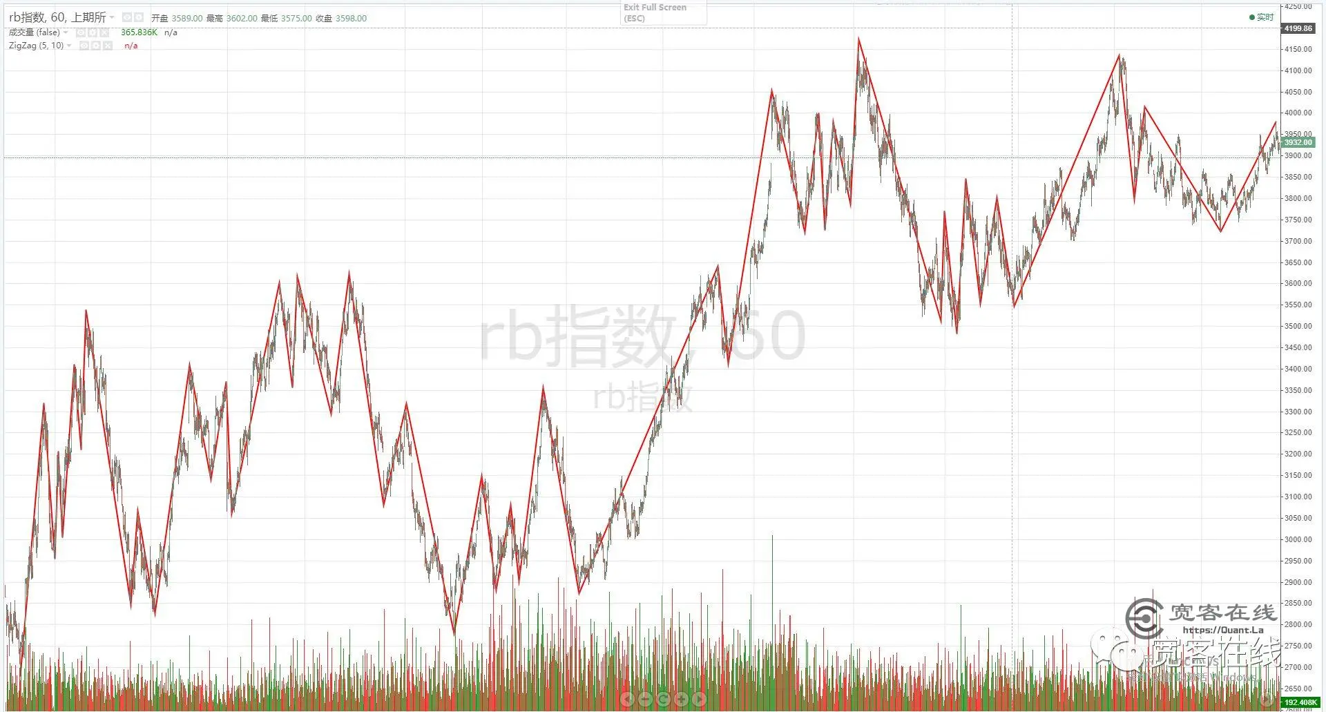 假设,螺纹钢(RB)的收盘价只比前一天的收盘价高出 1 个点,那么加速度为零。相反,如果收盘价只比前一天的收盘价跌去 1 个点,那么减速度为零。