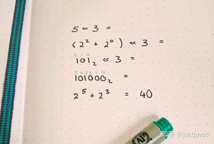 << 是按位左移运算。左移意味着我们将数字的二进制表示移到左边,并用零填充右边。例如,5<< 3 = 40。
