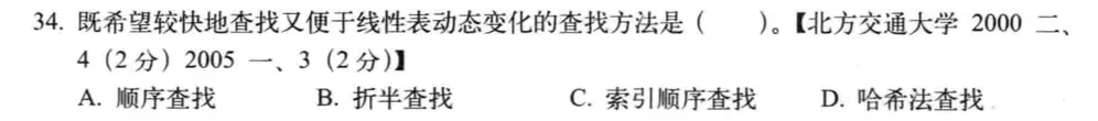 分块查找,又称为索引顺序查找,相比于哈希查找,既能快速的查找,又能适应动态变化的要求,此题不选择哈希查找