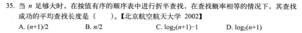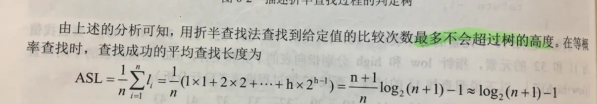 等概率查找条件下, 二分查找的平均查找长度,此公式需要记忆: