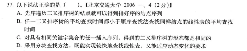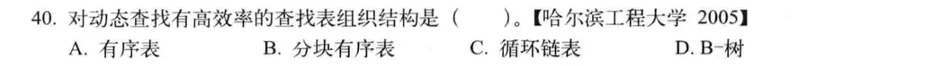 对动态查找具有高效率的查找表结构是:B树,而不是分块有序表