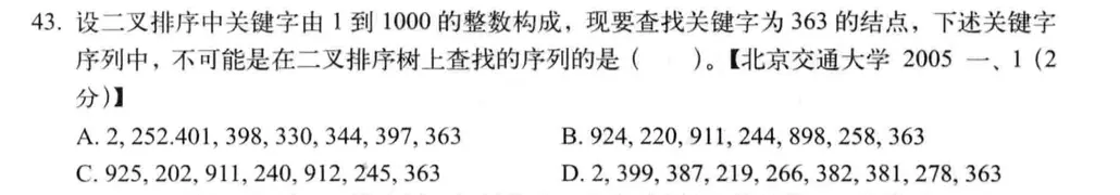 构造二叉排序树的过程与判别二叉排序树查找路径是否合理的方法是不一样的,构造过程,不能直接沿着一条路径从上到下的写