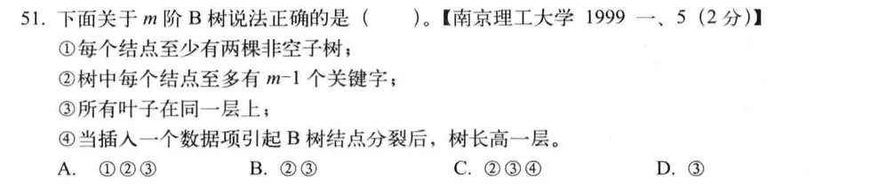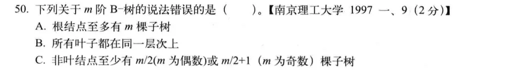 B-树是一棵m叉平衡排序树
