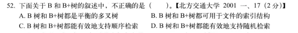 B+树中节点,最多有m个关键字,B-树中节点,最多有m-1个关键字