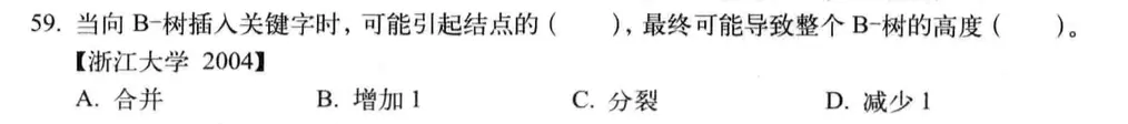当向B-树中插入关键字时,可能引起节点的增加或者分裂