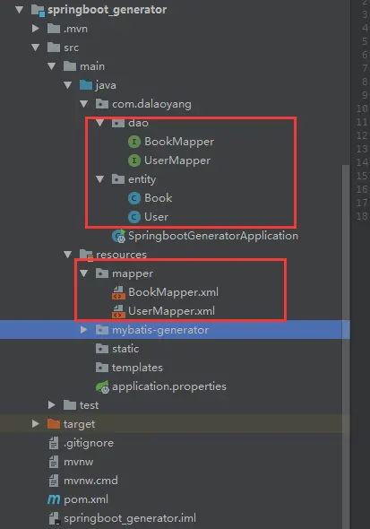 点击完成后,可以看到Mapper,dao,实体类都已经创建好了,如图: