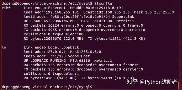 5、接下来,通过Navicat来远程连接数据库。通过ifconfig查看IP。可以看到IP地址为192.168.255.131。