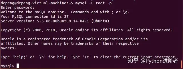 8、接下来,我们继续进入到Ubuntu中的mysql。