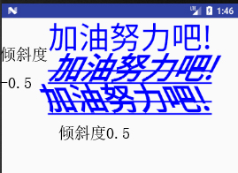 20 paint.setTextSkewX((float)0.5);//设置字体水平倾斜度,普通斜体字是-0.5