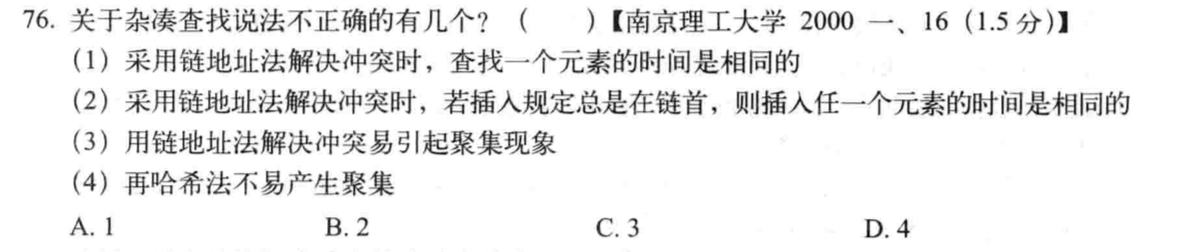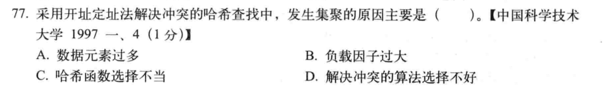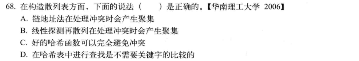 链地址法在处理冲突时,将同义词放在同一个链表中,同义词冲突不等于聚集,所以不会产生聚集现象