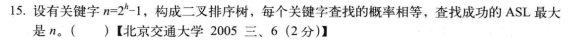 最坏的情况下为单支,查找长度为n,ASL是平均查找长度,为(n+1)/2