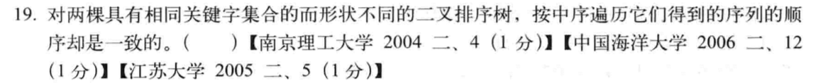 对两棵具有相同关键字而形状不同的二叉排序树,中序遍历的到的序列顺序是一致的