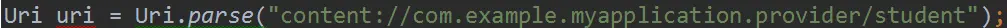 以之前学习数据库的demo为例,它的包名是com.example.myapplication,如果其他程序想访问该程序student.db中的student表,那么需要的内容URI如图所示: