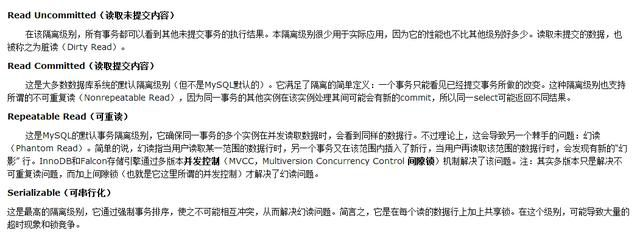SQL标准定义的四个隔离级别为:
