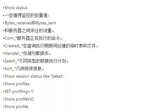 20、MYSQL数据库服务器性能分析的方法命令有哪些?