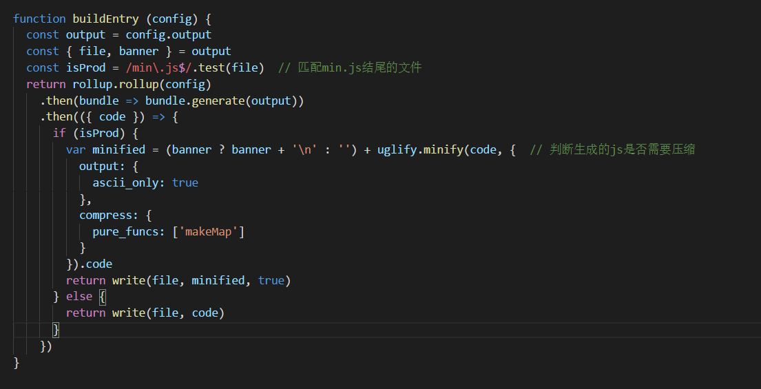 buildEntry则是真正的开始执行rollup,对返回的builds进行编译,然后生成对应的文件。