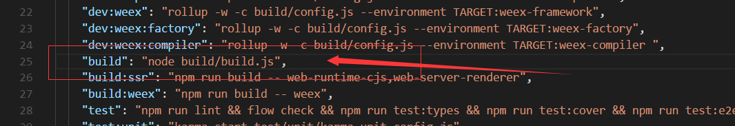 如上图所示,当我们执行npm runbuild命令的时候,首先package.json会将其解析为node build/build.js,执行这个目录,我们看看这个目录是什么!