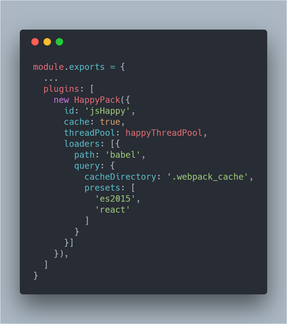 快速的rebuild速度能够在开发中带来更多的幸福感,在这一方面我们可以借助webpack的cache(默认开启),babel的cache,happypack的cache。