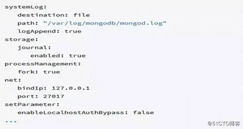 [client] port = 3306 socket = /data/mysql/mysql.sock [mysql] prompt="\u@db \R:\m:\s [\d]> " no-auto-rehash [mysqld] user = mysql port = 3306 basedir = /usr/local/mysql datadir = /data/mysql/ socket = /data/mysql/mysql.sock pid-file = db.pid character-set-server = utf8mb4 skip_name_resolve = 1 open_files_limit = 65535 back_log = 1024 max_connections = 512 max_connect_errors = 1000000 table_open_cache = 1024 table_definition_cache = 1024 table_open_cache_instances = 64 thread_stack = 512K external-locking = FALSE max_allowed_packet = 32M sort_buffer_size = 4M join_buffer_size = 4M thread_cache_size = 768 #query_cache_size = 0 #query_cache_type = 0 interactive_timeout = 600 wait_timeout = 600 tmp_table_size = 32M max_heap_table_size = 32M slow_query_log = 1 slow_query_log_file = /data/mysql/slow.log log-error = /data/mysql/error.log long_query_time = 0.1 server-id = 3306101 log-bin = /data/mysql/mybinlog sync_binlog = 1 binlog_cache_size = 4M max_binlog_cache_size = 1G max_binlog_size = 1G expire_logs_days = 7 master_info_repository = TABLE relay_log_info_repository = TABLE gtid_mode = on enforce_gtid_consistency = 1 log_slave_updates=1 binlog_format = row relay_log_recovery = 1 relay-log-purge = 1 key_buffer_size = 32M read_buffer_size = 8M read_rnd_buffer_size = 4M bulk_insert_buffer_size = 64M #myisam_sort_buffer_size = 128M #myisam_max_sort_file_size = 10G #myisam_repair_threads = 1 lock_wait_timeout = 3600 explicit_defaults_for_timestamp = 1 innodb_thread_concurrency = 0 innodb_sync_spin_loops = 100 innodb_spin_wait_delay = 30 secure_file_priv='' super_read_only=0 transaction_isolation = REPEATABLE-READ #innodb_additional_mem_pool_size = 16M innodb_buffer_pool_size = 1024M innodb_buffer_pool_instances = 8 innodb_buffer_pool_load_at_startup = 1 innodb_buffer_pool_dump_at_shutdown = 1 innodb_data_file_path = ibdata1:100M:autoextend innodb_flush_log_at_trx_commit = 1 innodb_log_buffer_size = 32M innodb_log_file_size = 2G innodb_log_files_in_group = 2 innodb_max_undo_log_size = 4G innodb_io_capacity = 4000 innodb_io_capacity_max = 8000 innodb_flush_neighbors = 0 innodb_write_io_threads = 8 innodb_read_io_threads = 8 innodb_purge_threads = 4 innodb_page_cleaners = 4 innodb_open_files = 65535 innodb_max_dirty_pages_pct = 50 innodb_flush_method = O_DIRECT innodb_lru_scan_depth = 4000 innodb_checksum_algorithm = crc32 #innodb_file_format = Barracuda #innodb_file_format_max = Barracuda innodb_lock_wait_timeout = 10 innodb_rollback_on_timeout = 1 innodb_print_all_deadlocks = 1 innodb_file_per_table = 1 innodb_online_alter_log_max_size = 4G internal_tmp_disk_storage_engine = InnoDB innodb_stats_on_metadata = 0 innodb_status_file = 1 [mysqldump] quick max_allowed_packet = 32M MongoDB 配置文件使用 Yaml 格式,如下图: