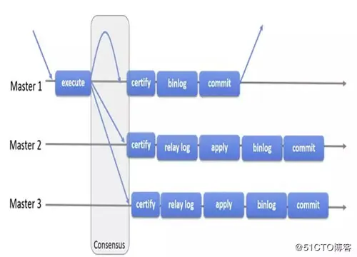 MySQL 官方在 5.7.17 版本正式推出组复制(MySQL Group Replication,简称MGR)。Master1,Master2,Master3,所有成员独立完成各自的事务。