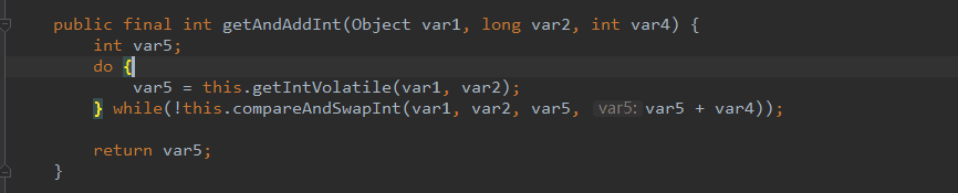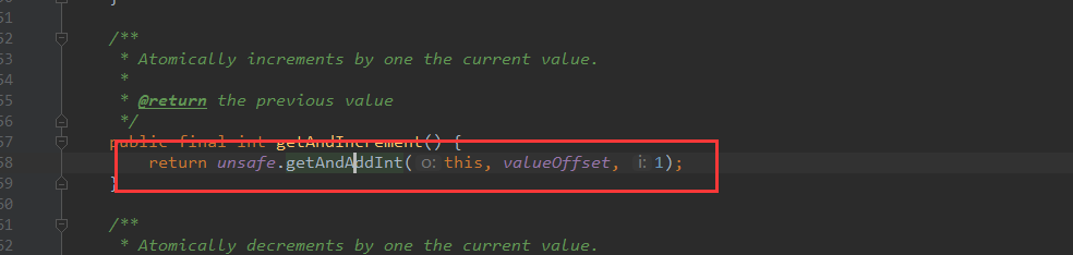 可以看看getAndIncrement这个类似i++的函数,可以发现,是调用了UnSafe中的getAndAddInt。