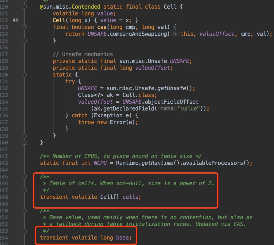 大概就是当竞争不激烈的时候,所有线程都是通过CAS对同一个变量(Base)进行修改,当竞争激烈的时候,会将根据当前线程哈希到对于Cell上进行修改(多段锁)。