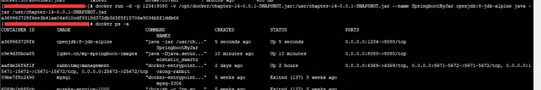 docker run -d -p 1234:8080 -v /opt/docker/chapter-14-0.0.1-SNAPSHOT.jar:/usr/chapter-14-0.0.1-SNAPSHOT.jar --name SpringbootByJar openjdk:8-jdk-alpine java -jar /usr/chapter-14-0.0.1-SNAPSHOT.jar