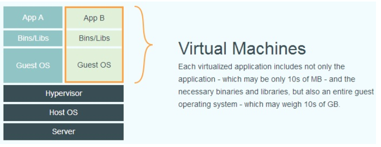 传统虚拟机技术是虚拟出一套硬件后,在其上运行一个完整操作系统,在该系统上再运行所需应用进程;