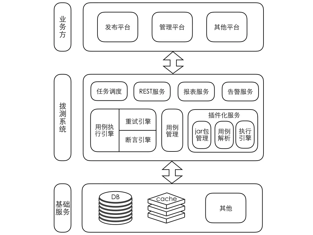 - 测试用例模块。包括业务访问,断言和告警。测试场景需要各个业务线的测试同学投入开发。
