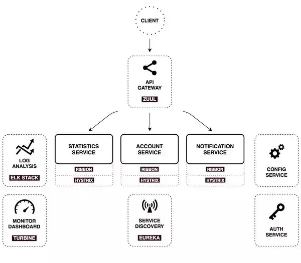 在微服务架构的概念提出之后,很快 Netflix 公司将自家经过多年大规模生产验证的微服务架构,抽象落地形成 一整套开源的微服务基础组件 NetflixOSS 。2015年,Pivotal 将 NetflixOSS 开源微服务组件集成到其 Spring 体 系,并推出 Spring Cloud 微服务开发技术栈。自此,微服务技术迅猛普及,甚至 Spring Cloud一度成为了微服务的代名词。