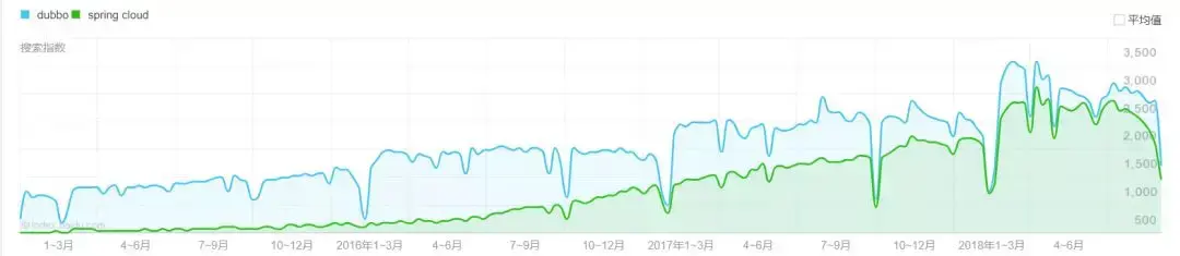 通过谷歌和百度的搜索统计可以看到,自2015年起到现在,国内对于Spring Cloud 检索指数也在逐渐赶超Dubbo。