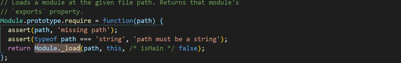 Module._load,从名字中可以看出这应该是一个加载的方法,此方法传递三个参数,第一个是路径,第二个是this的指向,第三个是一个布尔值,表示为是否为必要的。