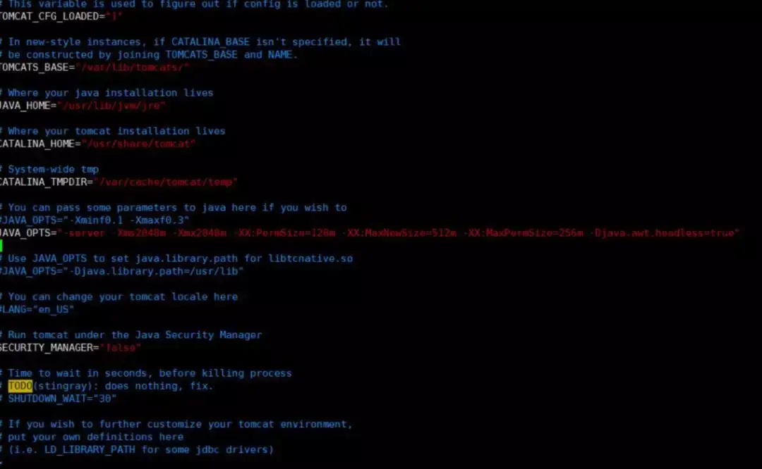 /etc/tomcat/tomcat.conf文件修改JAVA_OPTS