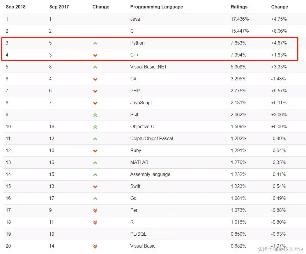 不过刚刚被挤下去的 C++ 咬得很紧,下个月的榜单第 3 名的宝座上坐着谁还不好说。