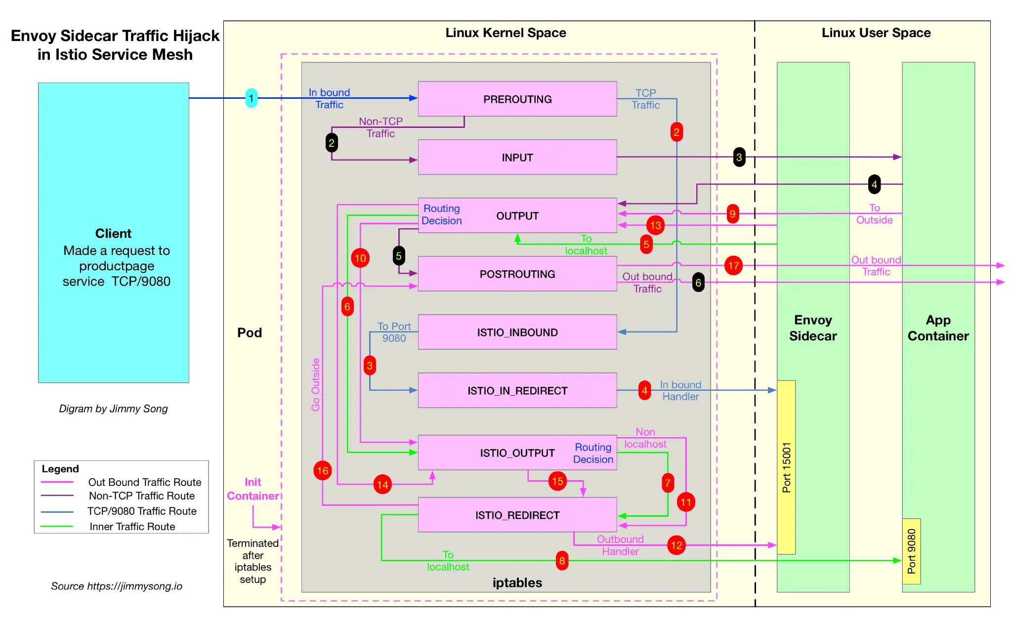 iptables:流量劫持是通过 iptables 转发实现的。