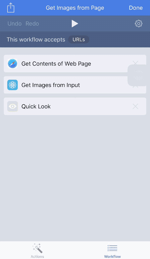 「Workflow」是一款将「工作流」自动化的 app,于 2017 年被苹果收购改为免费提供。