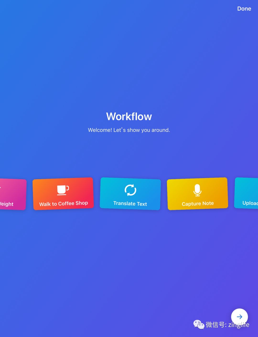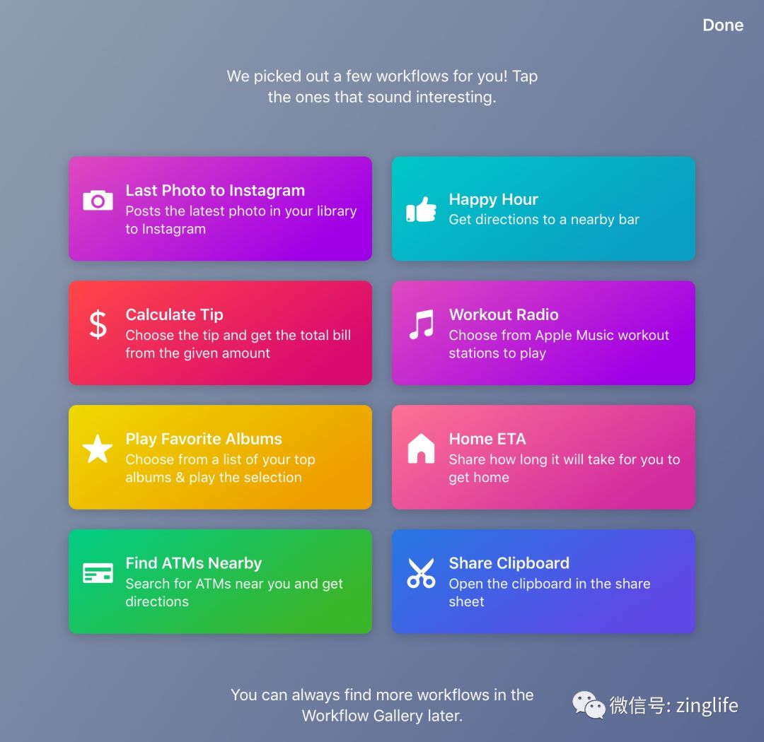 Workflow 自带了一些「工作流」,初次启动时可以按需选择使用:
